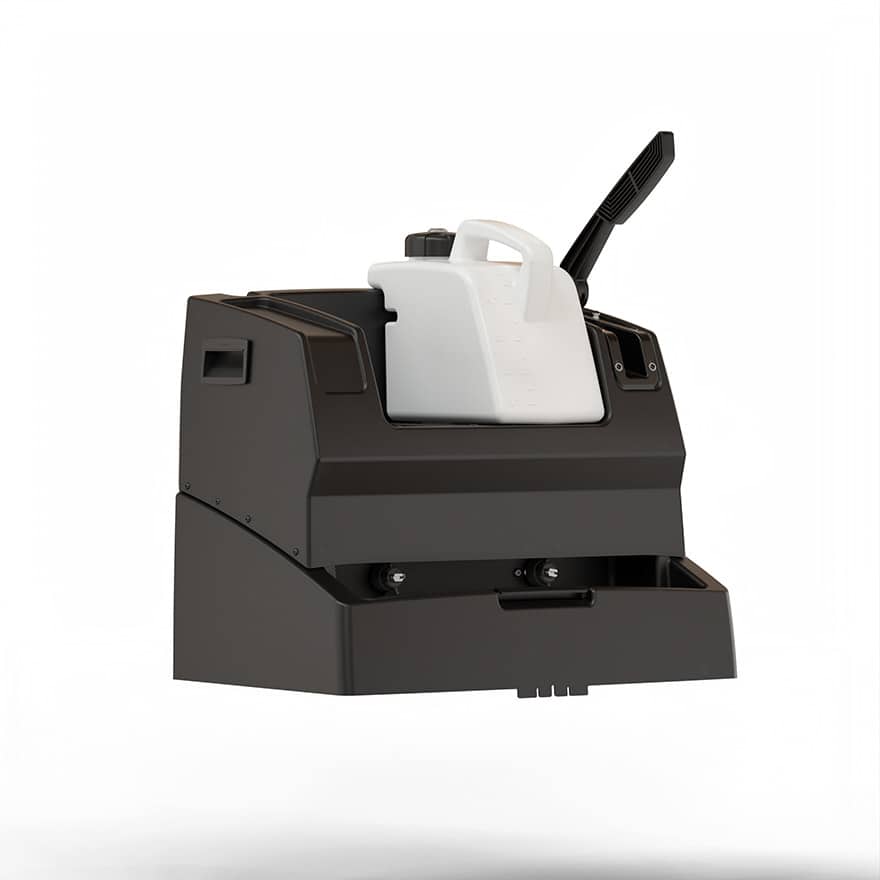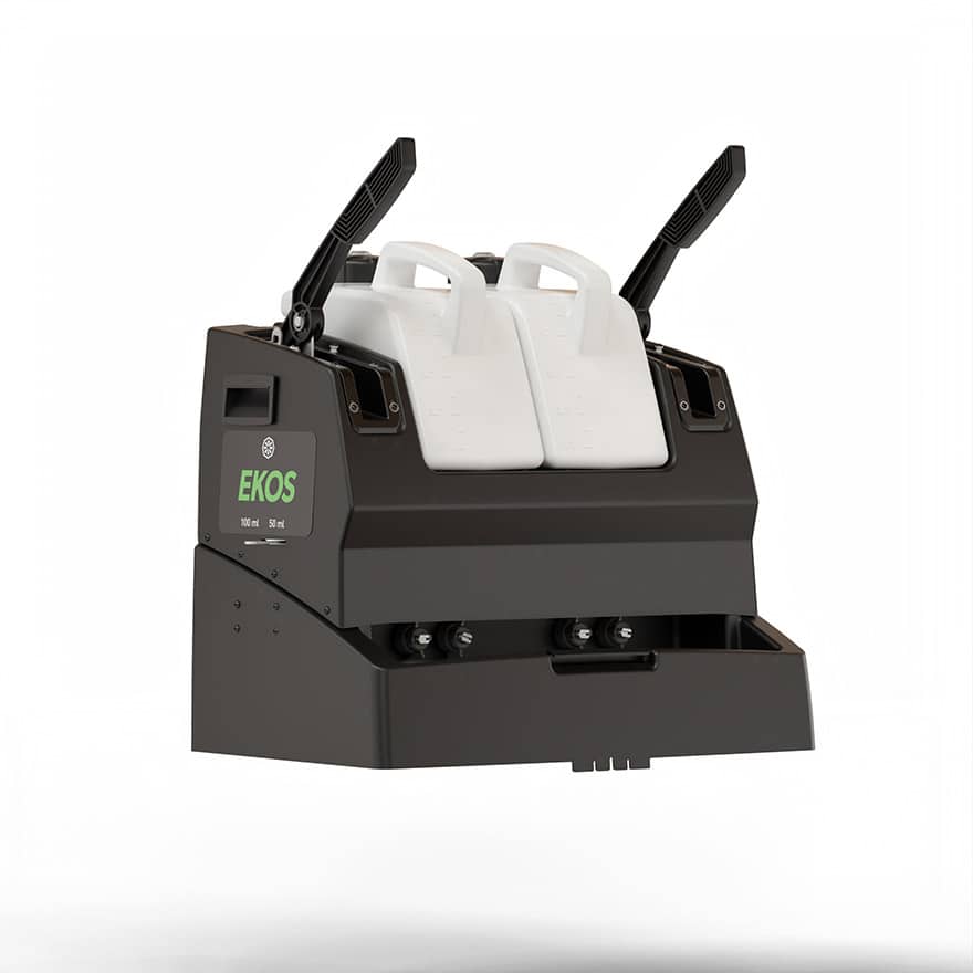 Con l’Ekos Carrello di impregnazione istantanea è possibile selezionare tra 50 ml o 100 ml di detergente per intervento, grazie alla leva meccanica dotata di fermo per evitare errori.