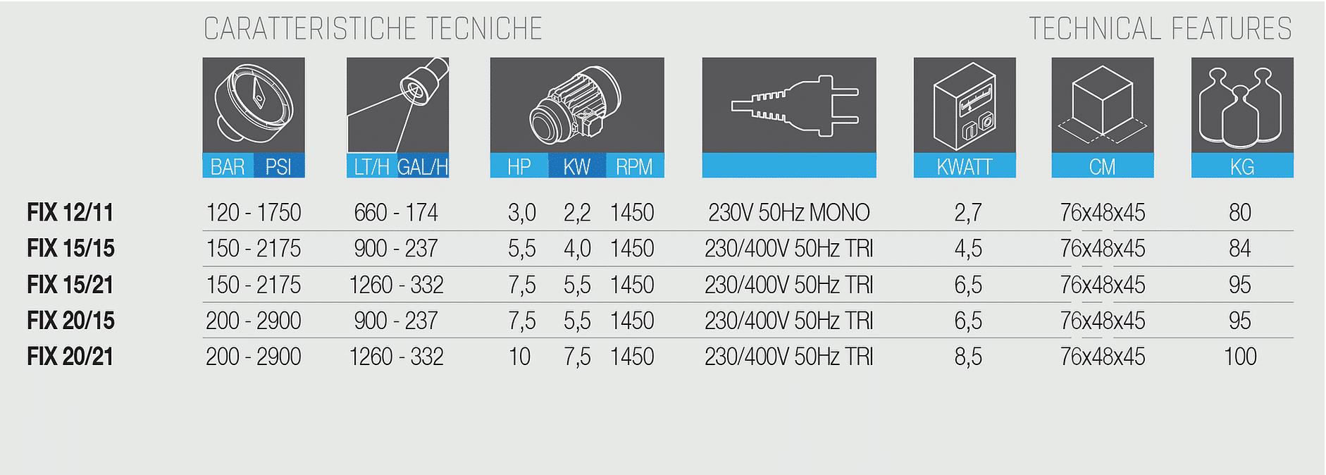 Dotata di una potente pompa in ceramica a 3 pistoni e valvola by-pass; sistema “Total Stop” ritardato e salvamotore magnetotermico.