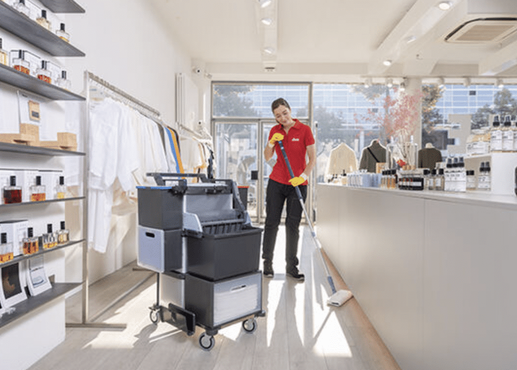 Il Shopster carrello professionale è una soluzione ultracompatta per la pulizia professionale: ingombro ridotto 64 × 44,5 × 90 cm, struttura chiusa con serratura, capacità di stoccaggio equiparabile a carrelli molto più grandi. Ideale per ambienti dove lo spazio è limitato ma la prestazione deve restare elevata.